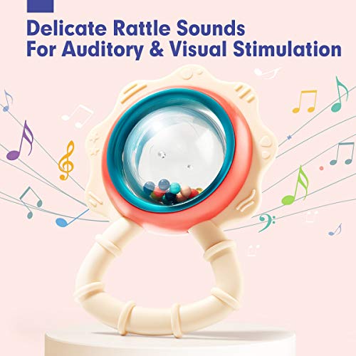 • 【Various Shapes and Sizes】At 3 months of age, babies use their hands to explore and engage with their surroundings. Our rattles are designed with multiple easy-grip handles, lovely shapes, and a perfect size for little hands to grab and shake. They’re so captivating that babies hold on tightly, promoting their grasp reflex and fine motor skill development. As babies grow, they learn to shake the rattles intentionally, further enhancing their cognitive and sensory development.
