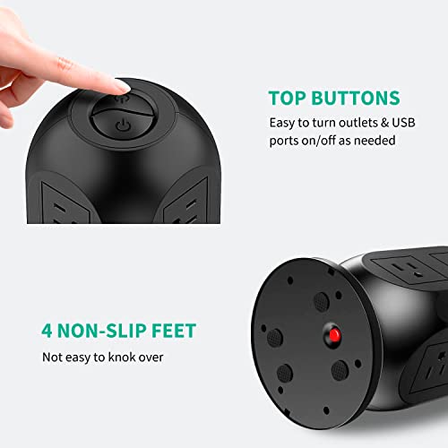• Power Your Safety: The power strip surge protector tower has passed FCC, CE, RoHS certification, it has surge protection, overload protection, short circuit protection, lightning protection. The extension cord with multiple outlets use the ceramic SPD to automatic cut off the power fastly when voltage surge is detected.